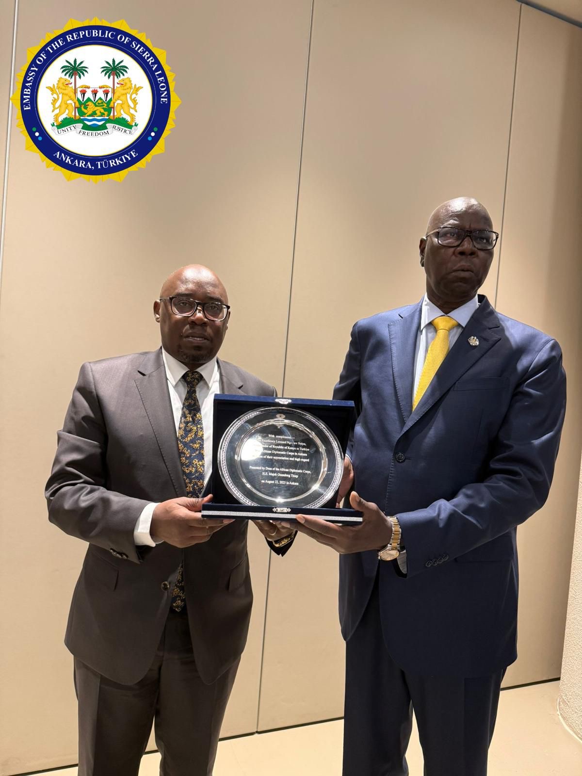 One Tower, Ankara, Friday 22 August 2025 -* Sierra Leone Ambassador to Türkiye, Her Excellency Francess Virginia Anderson, PhD, has joined her colleagues Ambassadors in Ankara to bid farewell to two distinguished diplomats, who have come to the end of their tour of duties.
